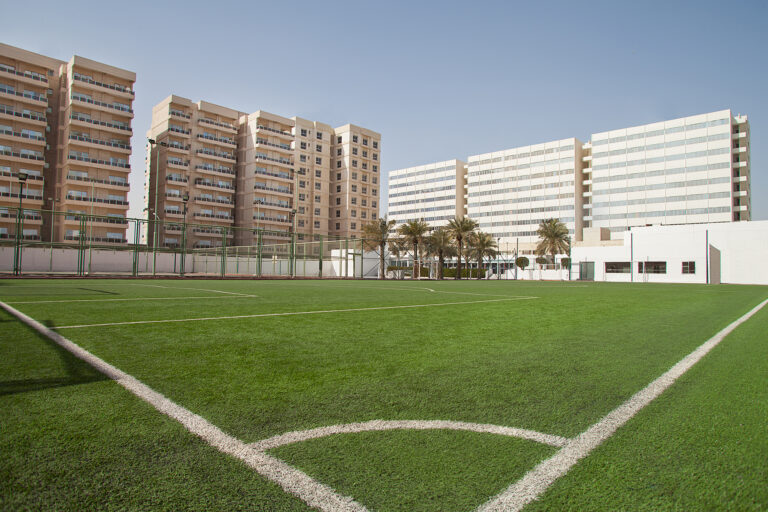 Block B, C, and D are typical residential buildings occupying eight floors, two towers for each block. All the apartments in this complex are spacious 3 Bedroom apartments with 4 apartments in each floor. All apartments boast large, airy and spacious balconies. The blocks are positioned in a U-shape layout surrounding, with block E being strategically located in the middle of Al Durrar complex and providing recreational and commercial services to the other blocks. It has a well-maintained basement with a large variety of shops and restaurants as well as a recreational/sports complex that includes 2 adult swimming pools and one kids’ pool. There is also a fitness gymnasium, squash and tennis courts and a multi-purpose open field.